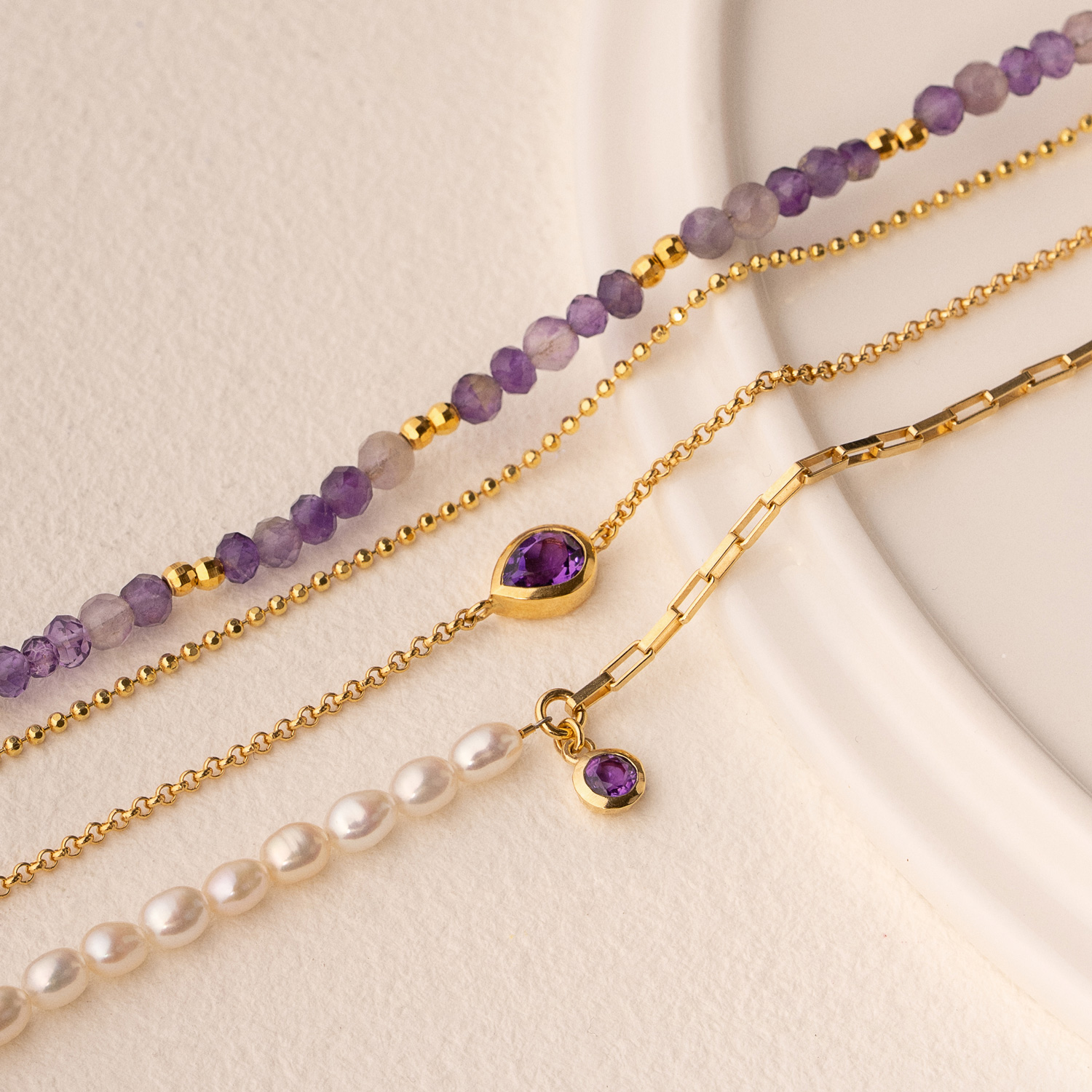 Amethyst is a must-have for any jewellery box and one of our absolute favourites! Known for it's incredible violet to deep purple hues, this gemstone is said to have calming qualities that help refocus the mind.